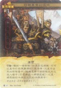 :牺牲一个部队。如果你这样做,你可以展示你套牌库顶的5张卡牌。从展示出来的部队当中,随机选择一个部队并把它放入场中